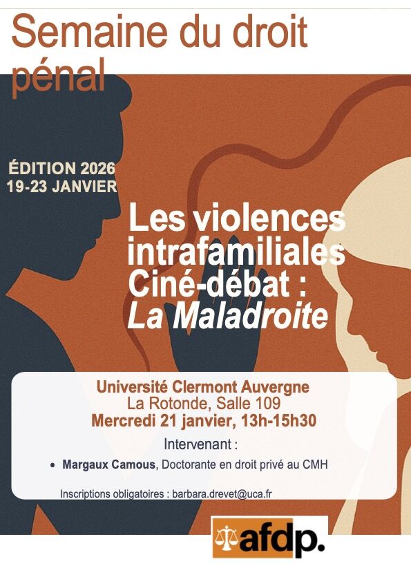 Dans le cadre de la semaine du droit pénal instituée par l'Association française de droit pénal, les écoles et facultés de droit sont invitées à organiser des manifestations autour d'un thème commun, qui est cette année celui des violences intrafamiliales.