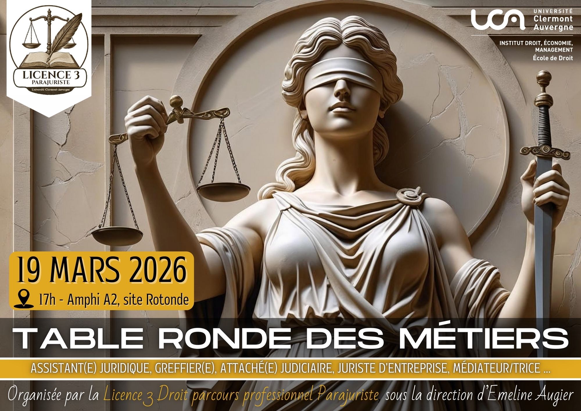 Cette rencontre nous permettra également de vous présenter le cursus professionnalisant « ParaJuriste » (en alternance) proposé en Licence 3 à l’UCA, et de répondre à vos questions.